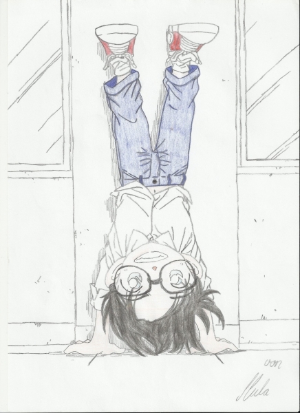 das ist doch das Titelbild von "Ein Zimmer steht auf dem Kopf" oder so