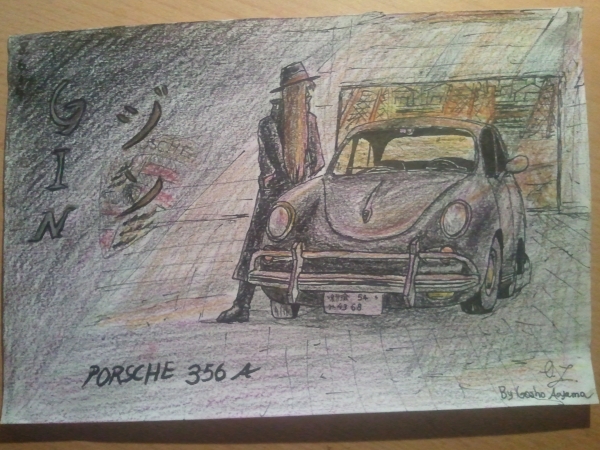 (7)Yay danke, Das mit den Farben war schwierig, aber nachdem ich etwas rumschraffiert hatte, mit allen möglichen Farben, sah es doch zu meiner Zufriedenheit aus. Ich wollte Gini erst anders hinstellen, z.B. auf die rechte Seite, was ein ungeheures Problem darstellte. Das bemerkte ich irgendwann, als ich verzweifelt im Anime nach einer Szene suchte, in der der Porsche von der rechten Seite zu sehen war. Das fällt einem vorher nicht auf, bis man danach sucht. Es gibt wirklich keine, jedenfalls keine, in der er ganz zu sehen ist oder die richtige Perspektive hat. Ich glaube, Gosho mag die linke Seite von diesem Auto :DD