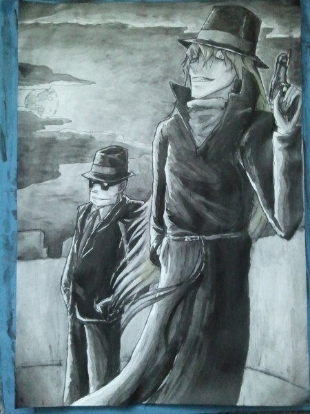 Oja danke ihr Lieben :3 Mir ist auch gleich beim Zeichnen aufgefallen, dass ich das gut hingekriege, daher MUSSTE ich das diesmal einfach mit Aquarell machen, nicht mit Buntstift oder sowas. Eigentlich wollte ich's auch erst bunt machen (also...das, was farbig wäre, z.B. seinen Pullover oder Wodkas Hemd, aber so viel gab es da eh nicht zu colorieren... :D) aber schwarz-weiß sah es dann doch so gut aus, dass ich es gleich so gelassen hab (so kommt auch die düüstere Stimmung noch besser rüber!) ^^<br /> <br /> btw hab ich mir auch für den Fall, dass ich die mit auf Fanarts zeichne, extra bei Gockl (ihr wisst schon, was ich mein) ein Bild einer solchen Beretta rausgesucht. Die auf dem Bild hab ich dann aber trotzdem größtenteils aus dem Gedächtnis raus gemalt.<br /> <br /> Nadann, viel Freude noch mit dem Bild, meine lieben DC.ch-Kameraden! :D