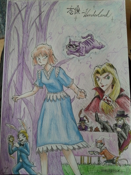 (16)Dankesehr :3 Ja ich denk viel über sowas nach, bevor ich es male. Wer passt ungefähr zu wem? I welchem Verhältnis stehen die zueinander? Ich wollte anfangs auch mit den Hauptcharas ein Bild machen, aber da hab ich einfach nicht die richtigen Rollen gefunden. Besonders der Hutmacher war schwierig, ich hätte höchstens Kaito genommen, aber der passt da etwas weniger. Es gibt einfach keine besonders verrückten Charaktere, und da ich mir dachte, ich mach sowieso immer BO-Bilder, hab ich es eben so gemacht :P Gin ist auch nicht so verrückt wie der Hutmacher, aber etwas passt er, vorallem, wenn man eine Freundin hat, die einen Manga über Alice i.W. gezeichnet hat, in der der Hutmacher auch so cool ist *-* (soviel dazu, falls sie es schaffen sollte, den zu veröffentlichen: Er soll "Welcome to Wonderland" heißen! *Schleichwerbung mach*>_>) Erkennt man Bourbon eigentlich? Ich sorge mich schon, weil nur die Frisur verrät, dass er es ist... o.o