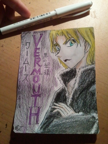 das sieht aus wie eine KAKAO karte *-* einfach hammer das so minni zu zeichnen <br /> und dann auch noch vermouth :D ich finde sie ist echt schwer zu zeichnen