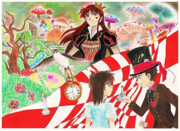 Naja, mit n bissl Fantasie geht das :D Und danke <33 Für alle mal dir Rollenbesetzung: Akako - Rote Königin Aoko - Alice Kaito - Der verrückte Hutmacher Watson (Hakubas Adler/Falke, was war das nochmal? XD) - Der Hase mit seiner Uhr^^