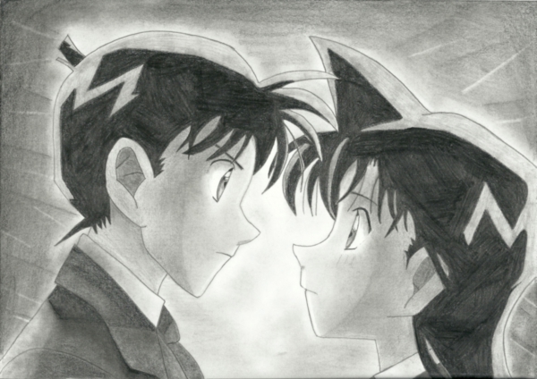 cool. Ich find vor allem diese Hintergrundgestaltung interessant... die sieht so plastisch aus. wie mit Hervorhebungen und Vertiefungen... cool. und die Kleidung von Shinichi ist suuuper gut gezeichnet. :)