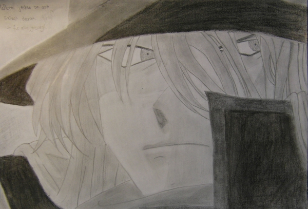 Aaaaalso...ich habe beschlossen, zu jedem Bild, das ich zeichne, einen Spruch zu schreiben. Insgesamt wird es so 3 oder 4 verschiedene Sprüche geben...die dann sozusagen mein "Markenzeichen" sind. Da Gin eher cool ist, habe ich einen einigermaßen coolen Spruch gewählt, der jetzt auch mein Spruch für alle SO-Mitglieder sein wird: "Wenn jeder an sich selbst denkt, ist für alle gesorgt" Ich probiere, das nächste Mal beim Schreiben fester aufzudrücken...:)