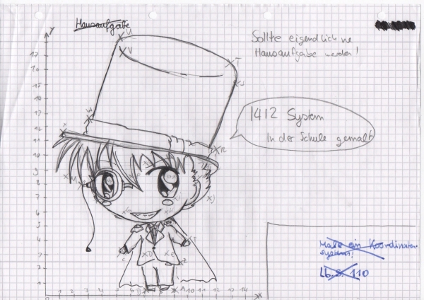 (21)Bitte zeigt eure Hausaufgaben mir. Snauz was ist das denn Ja das ist ein Kaito kid der meine Hausaufgaben geglaut hat. (hehe)