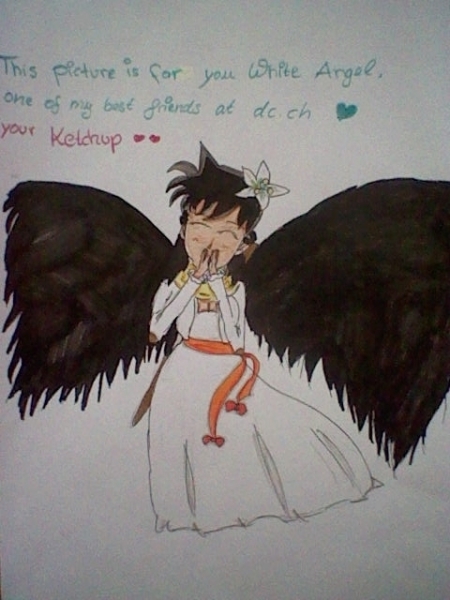 ach wie süß aber müssten die flügel nicht weiß sein da es ein engel ist??...ach vergiss die frage super bild ^^