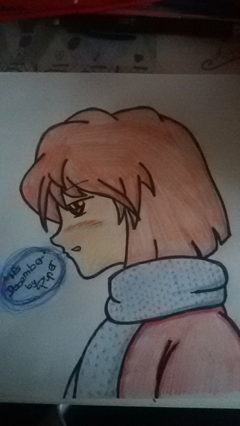 Dieser Rote Ton ist voll niedlich. :3 Der Schal ist schön gemacht x3.