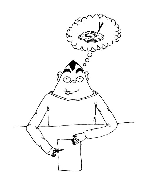 vielleicht will er ja auch Aal auf Reis zeichnen deswegen denkt er drann :D